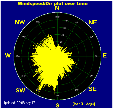 Maximum windspeed = 11.3 m/s from 221°( SW) on day 01 at time 04:11