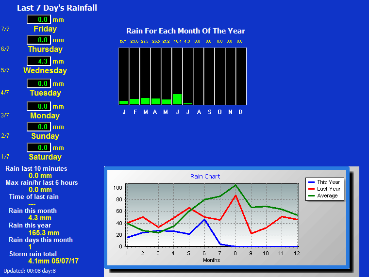 Record high rain rate: 19.7 mm/min at: 12:25 on: 16 Aug 2017